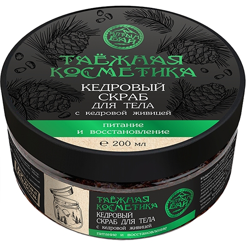 Натуральный скраб на основе кедровой живицы и скорлупы ореха бережно отшелушивает, смягчает и восстанавливает кожу, даря ей упругость, увлажнение и шелковистую гладкость.