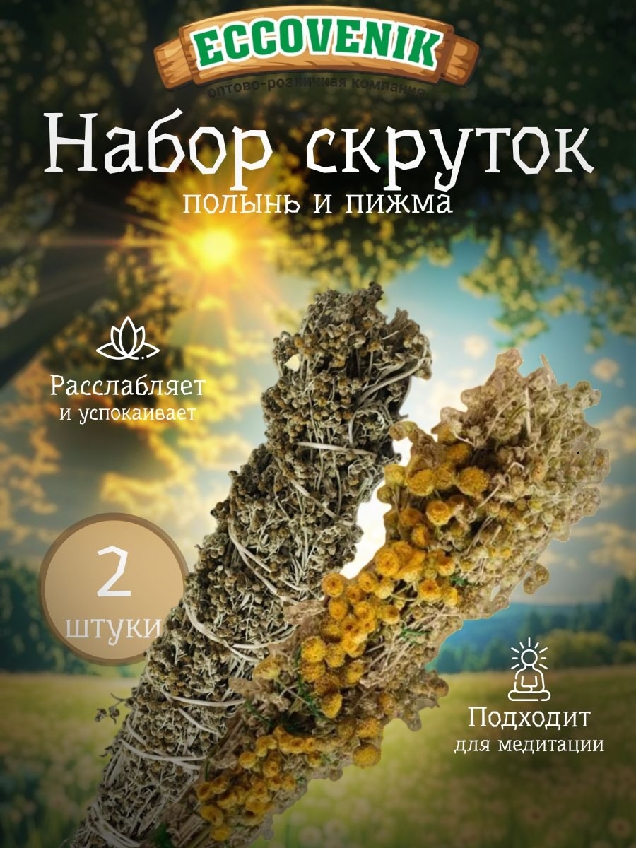 Полынь известна своими целебными свойствами и используется в различных ритуалах для очищения пространства от негативной энергии. Пижма, в свою очередь, приносит в дом тепло и уют, наполняя его мягким и травяным ароматом. Сочетание этих двух растений создает уникальную композицию, способствующую гармонизации обстановки и подготовке к медитации.Набор идеально подходит для использования в различных сферах: от ароматизации жилых помещений до создания атмосферы спокойствия во время медитаций и йоги. Просто подожгите конец одной из скруток и дайте ей слегка тлеть, чтобы насладиться богатым ароматом, который ненавязчиво наполнит комнату.Каждый элемент набора тщательно подобран для достижения наилучшего эффекта. Использование натуральных компонентов гарантирует отсутствие вредных химических веществ, что делает их безопасными для вас и ваших близких. Подарите себе и своим близким моменты уединения и спокойствия с набором скруток Полынь+Пижма.Этот набор станет отличным подарком к любому празднику или просто приятным сюрпризом для дорогих вам людей. Разнообразные способы применения и бесконечные возможности создания атмосферы делают этот продукт незаменимым элементом вашего домашнего уюта. Ощутите магию природы и помогите себе и своим близким настроиться на позитивный лад, даря комфорт и покой в повседневной жизни.