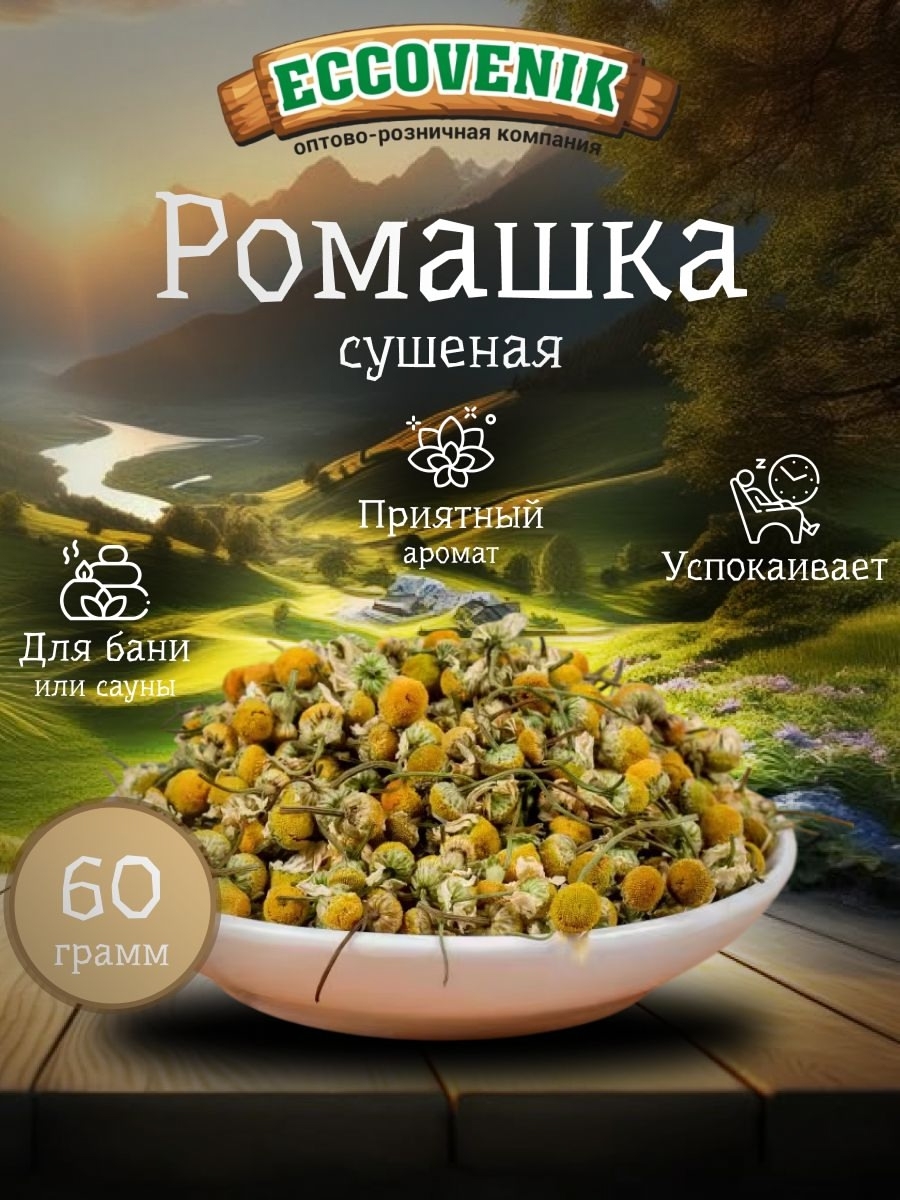 Ромашка сушеная 60гр. - это идеальный подарок для себя или близких. Она поможет вам создать атмосферу спокойствия и уюта в вашем доме.