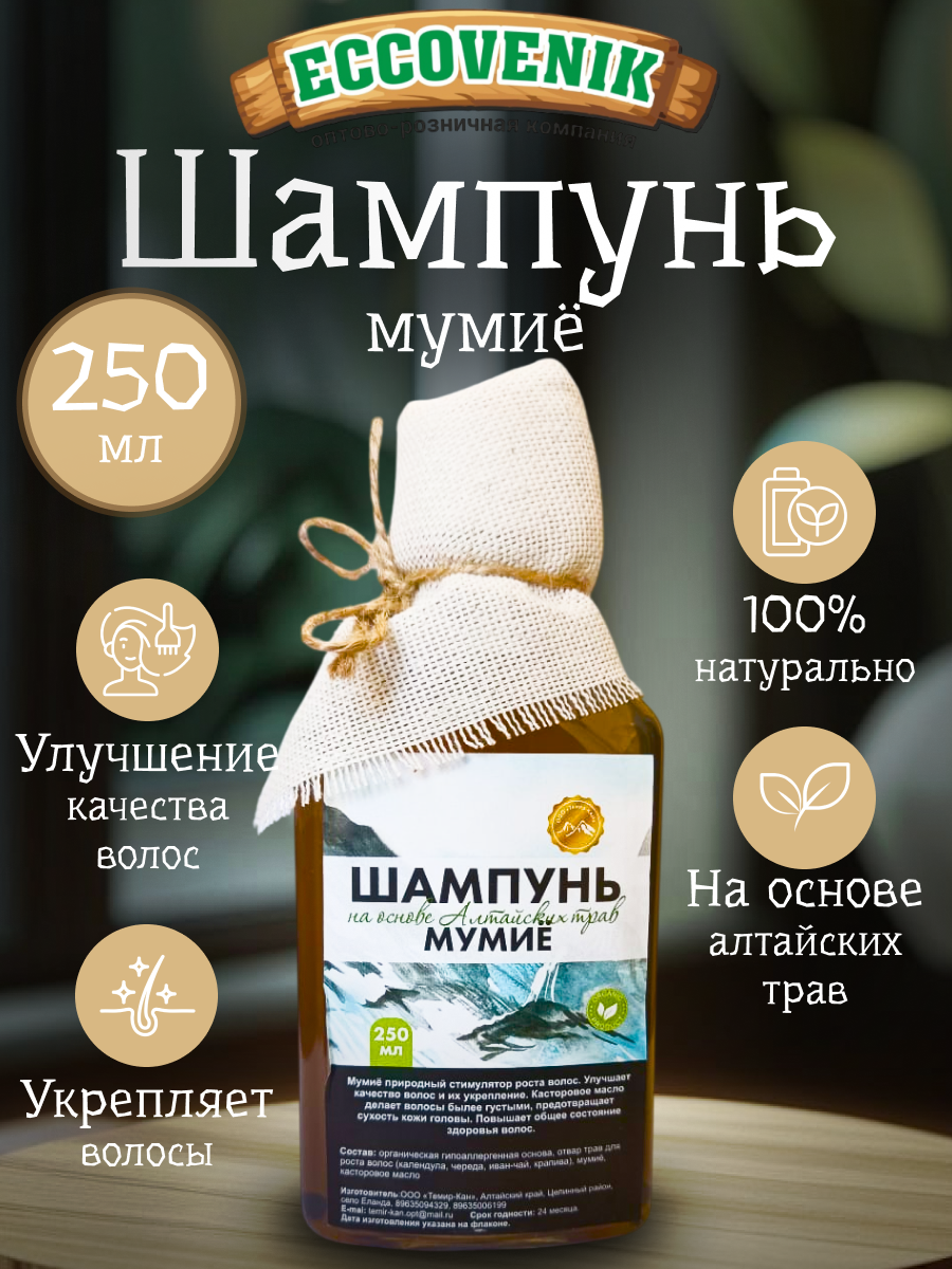 "Алтайское мумие" — волшебство природы в каждой капле! Представьте себе: ваши волосы наполняются жизненной энергией, становятся здоровыми и сияющими буквально сразу после использования. Шампунь подходит всем, кто мечтает о роскошной шевелюре и хочет удивлять окружающих своей красотой. Не упустите шанс ощутить магию Алтайских трав по привлекательной цене – заказывайте прямо сейчас!