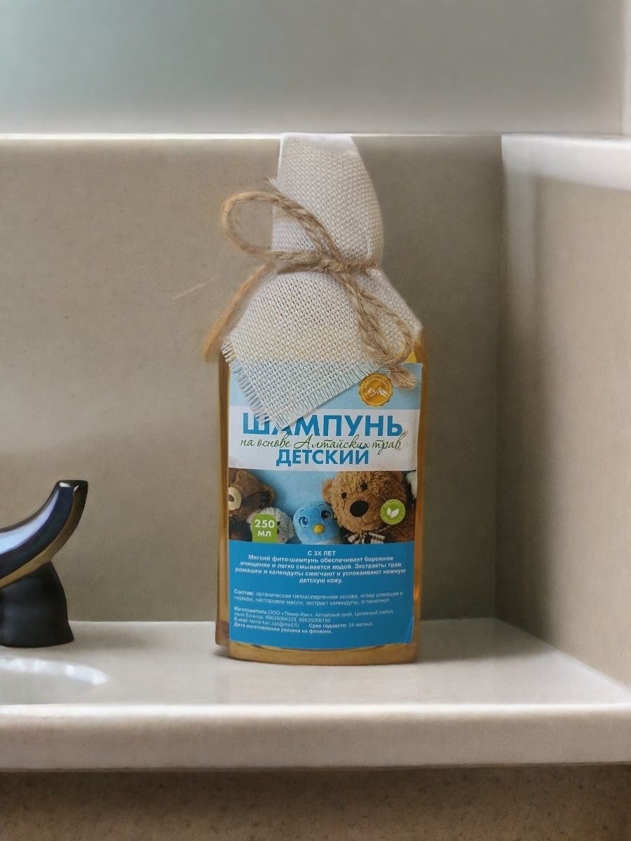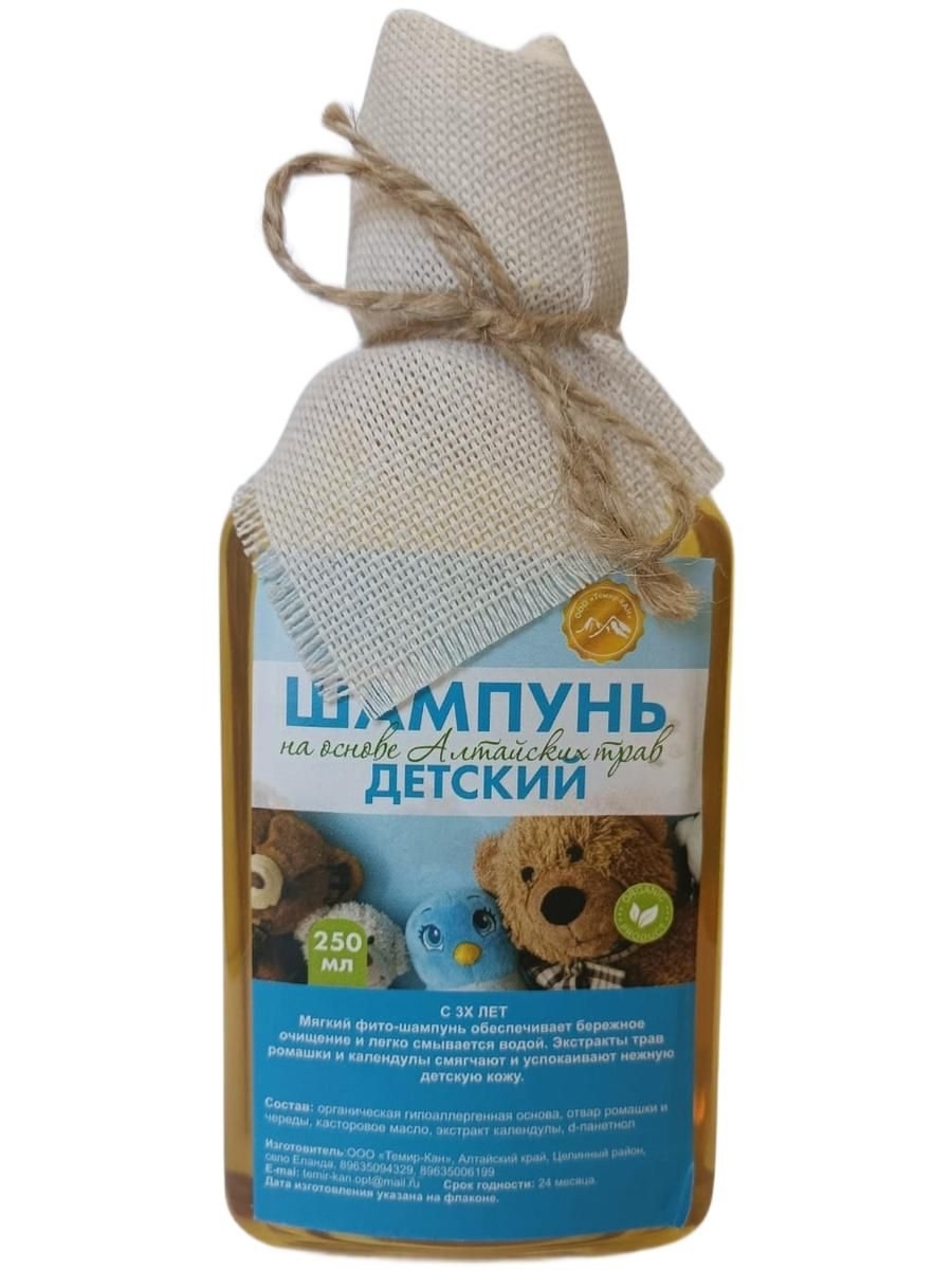 Наш детский шампунь создан специально для бережного ухода за волосами и кожей головы малышей. В основе формулы - целебные травы Алтая, собранные в экологически чистых районах.