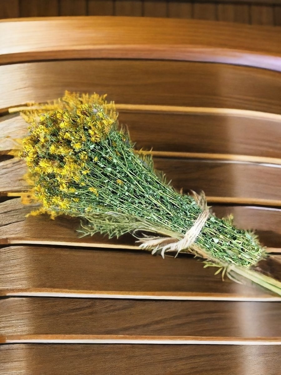 Веник для бани Зверобой - это уникальный аксессуар, который поможет вам провести настоящую баню. Этот пучок из травы зверобоя обладает антибактериальными свойствами и помогает очистить тело от токсинов.